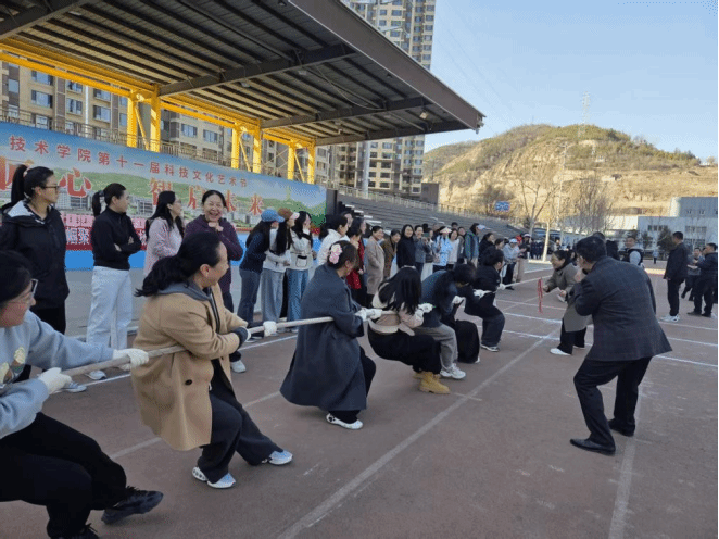 3月11日下午,公共课教学部工会在学院第一运动场举办“巾帼聚力 绳采飞扬”三八妇女节拔河比赛,全体在职女职工踊跃参与。比赛以科室、教研室为单位组队,共4支队伍,采用单淘汰赛制与三局两胜制展开角逐。