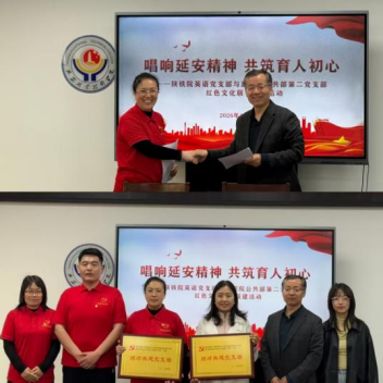 4月24日,我院公共课教学部第二党支部与陕西铁路工程职业技术学院英语党支部,在我院联合开展“唱响延安精神 共筑育人初心”红色文化联学联建活动,两校党员教师共学共建、共研育人。活动以“理论共学+红歌体验+实践共研+成果共建”为主线。开场仪式上,双方签署联学联建协议,正式启动支部共建。